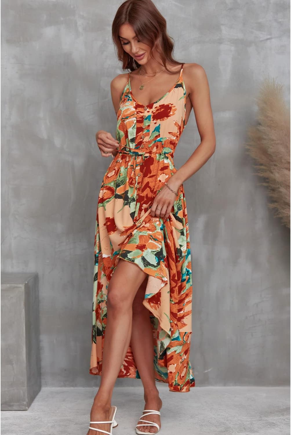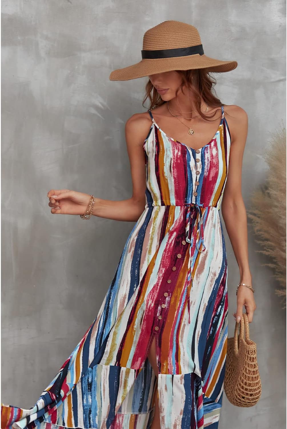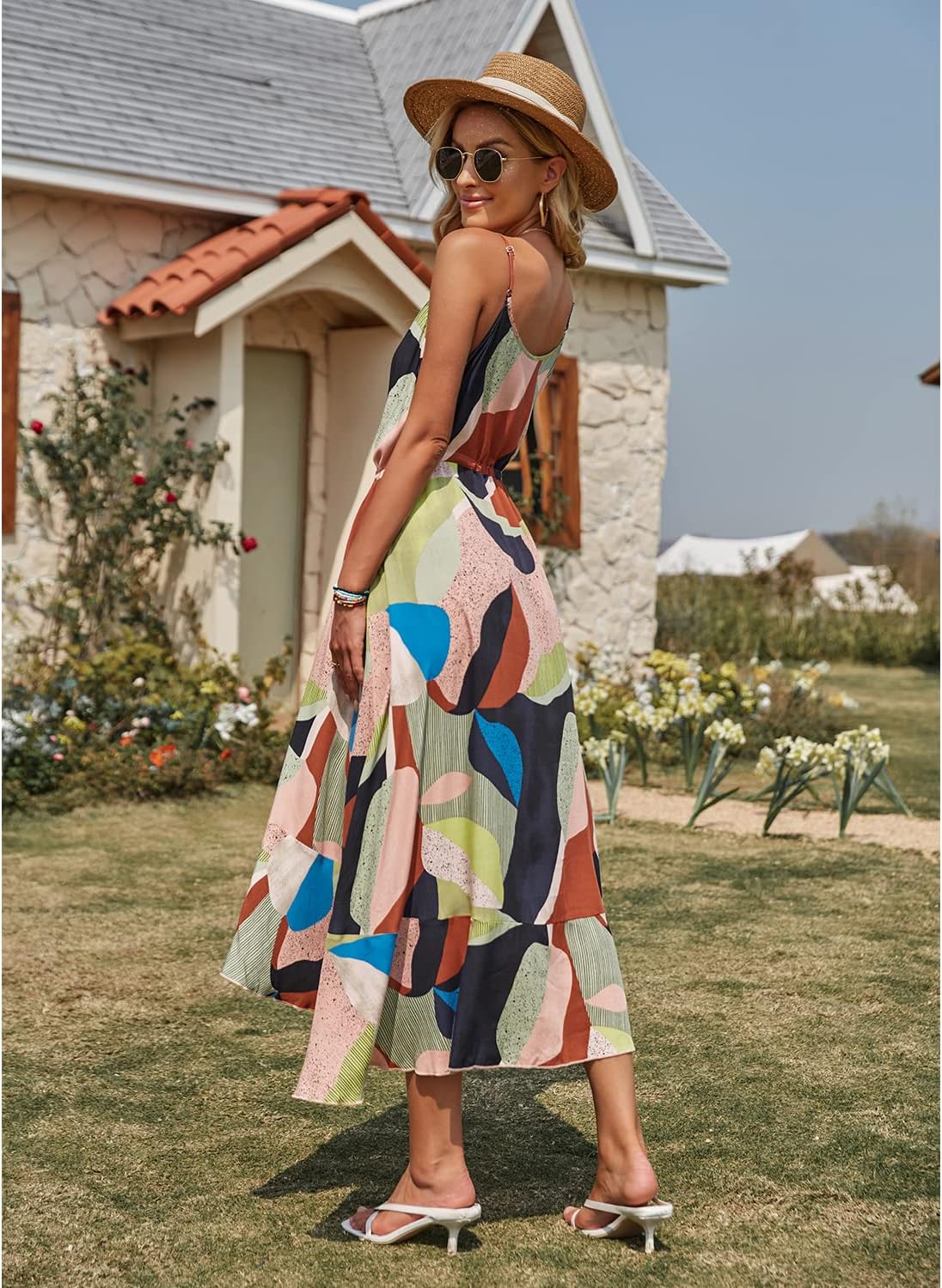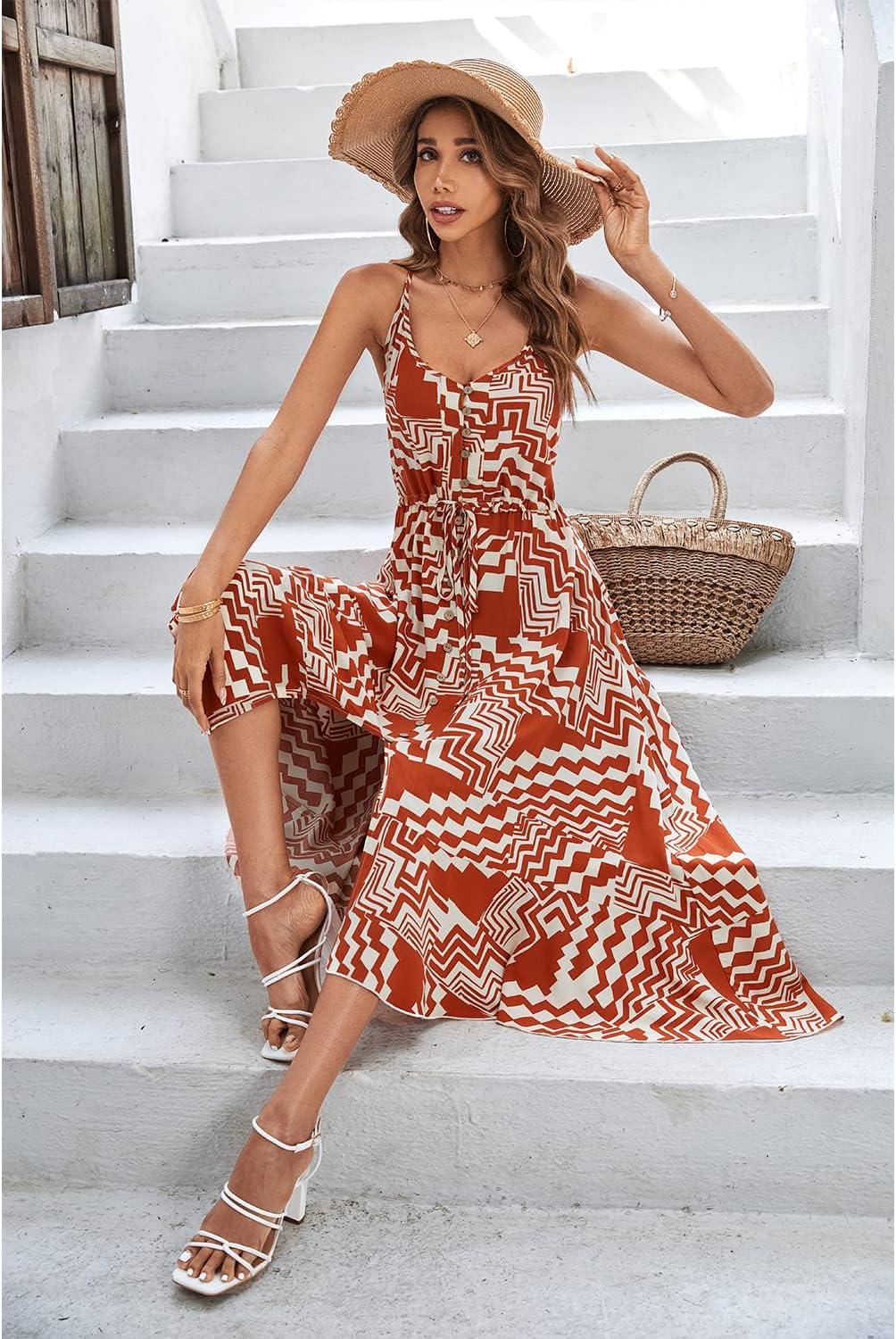 BROVAVE Women's 2024 Summer Casual Boho Sundress Polka Dot Spaghetti Strap V Neck Flowy Midi Dresses