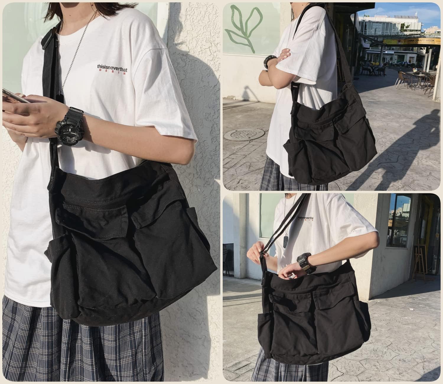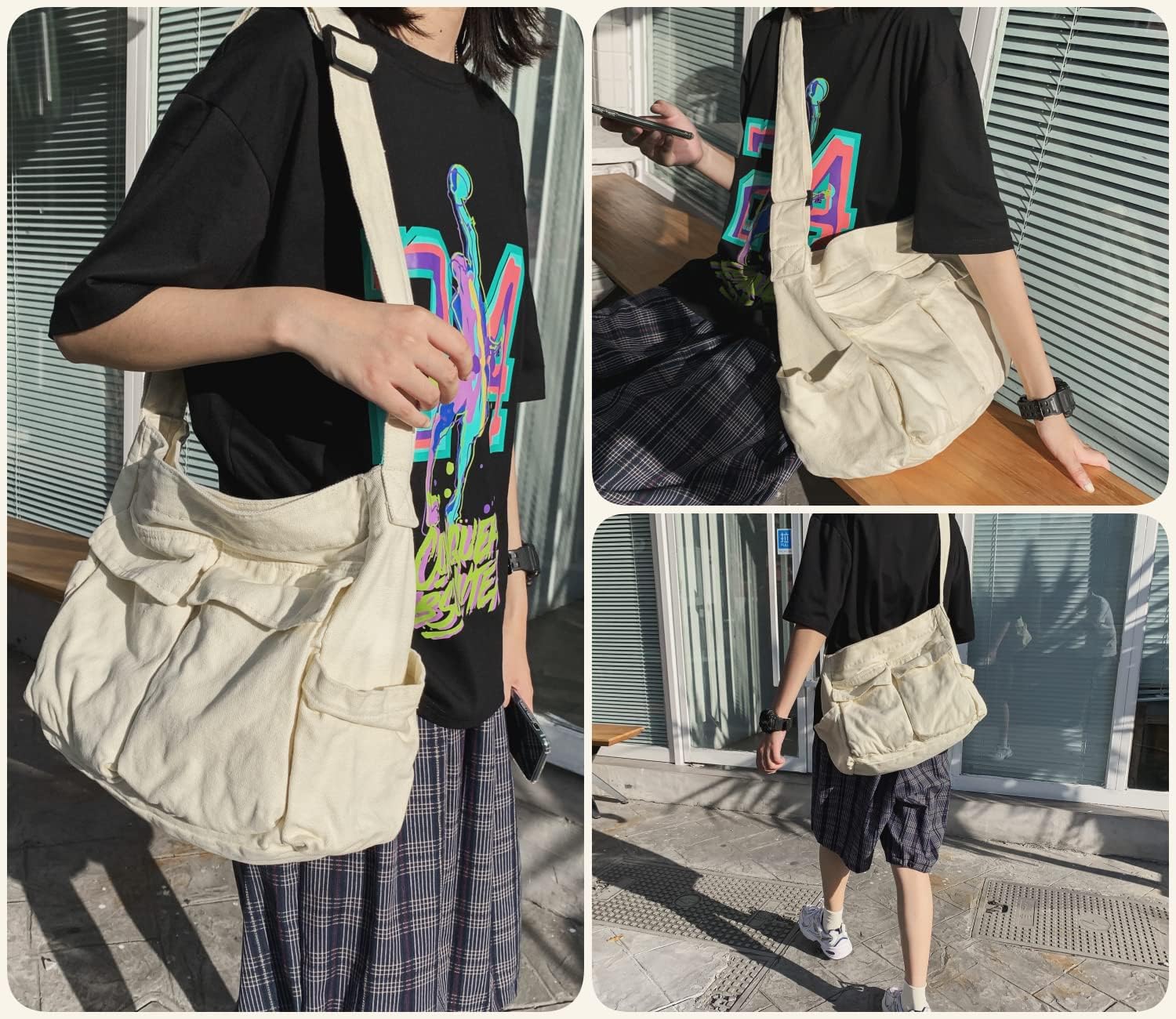 Leaper Canvas Hobo Crossbody Handbag for Women and Men Shoulder Bag Casual Tote Bag