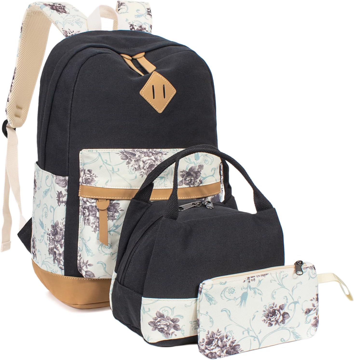 Leaper Cute Laptop Backpack Canvas Bag Daypack bag Lunch Bag Purse 3 in 1