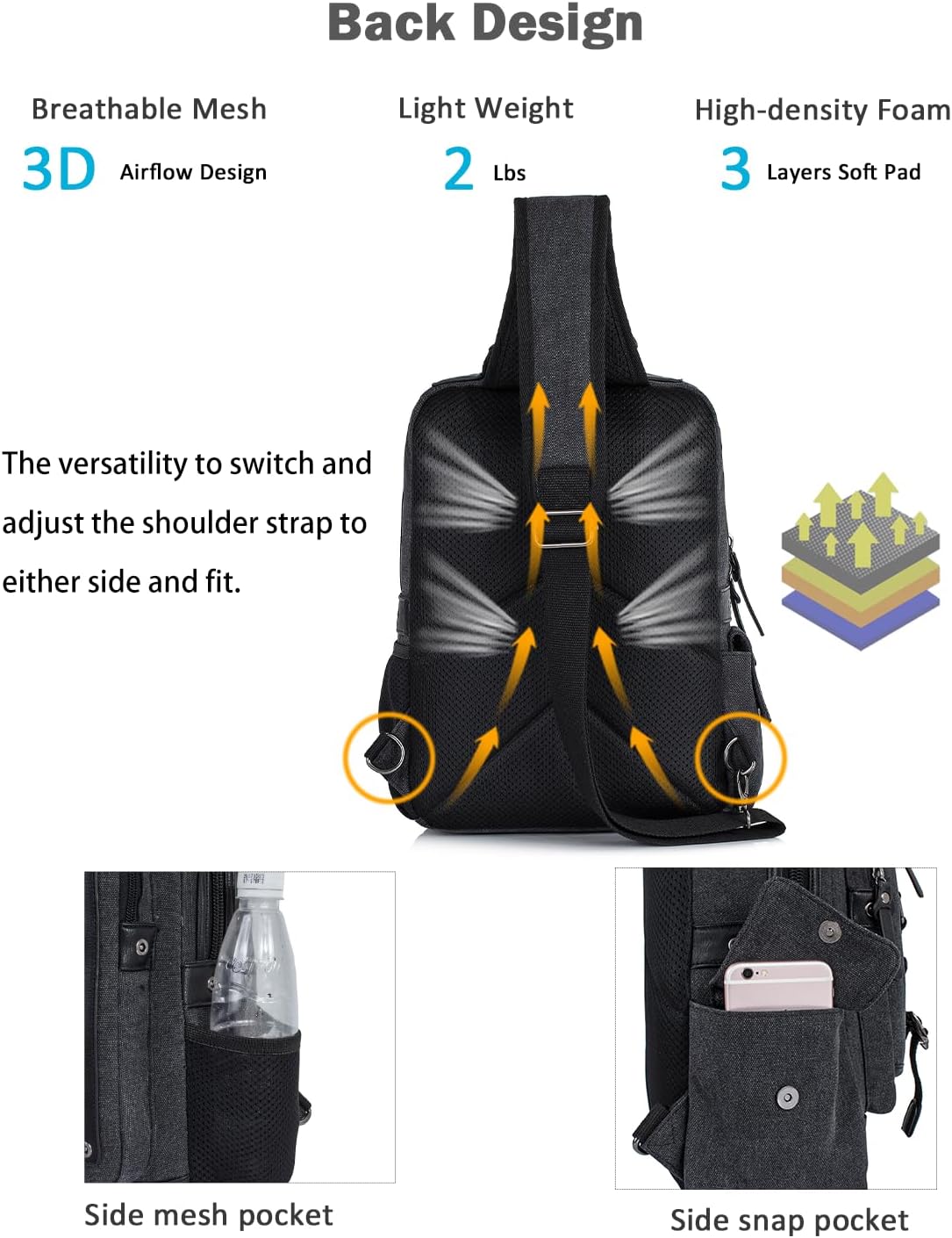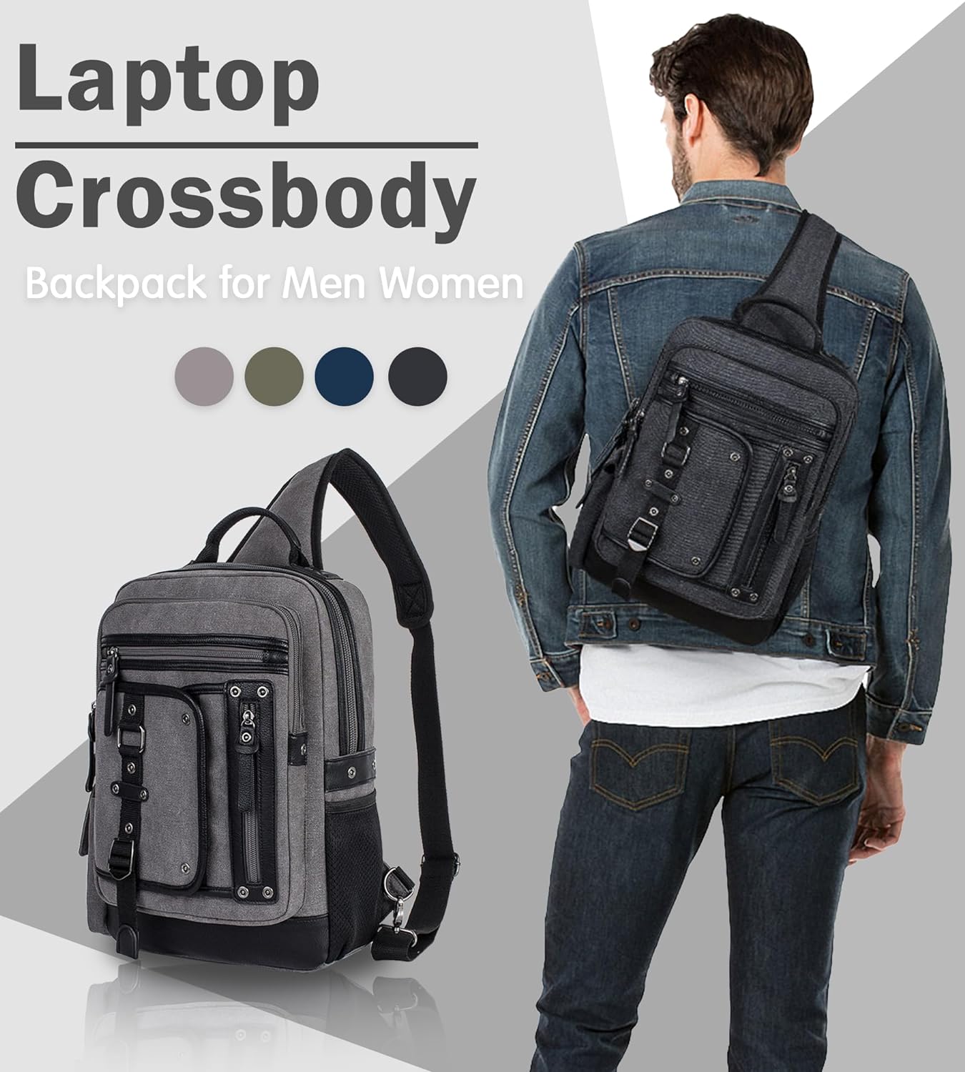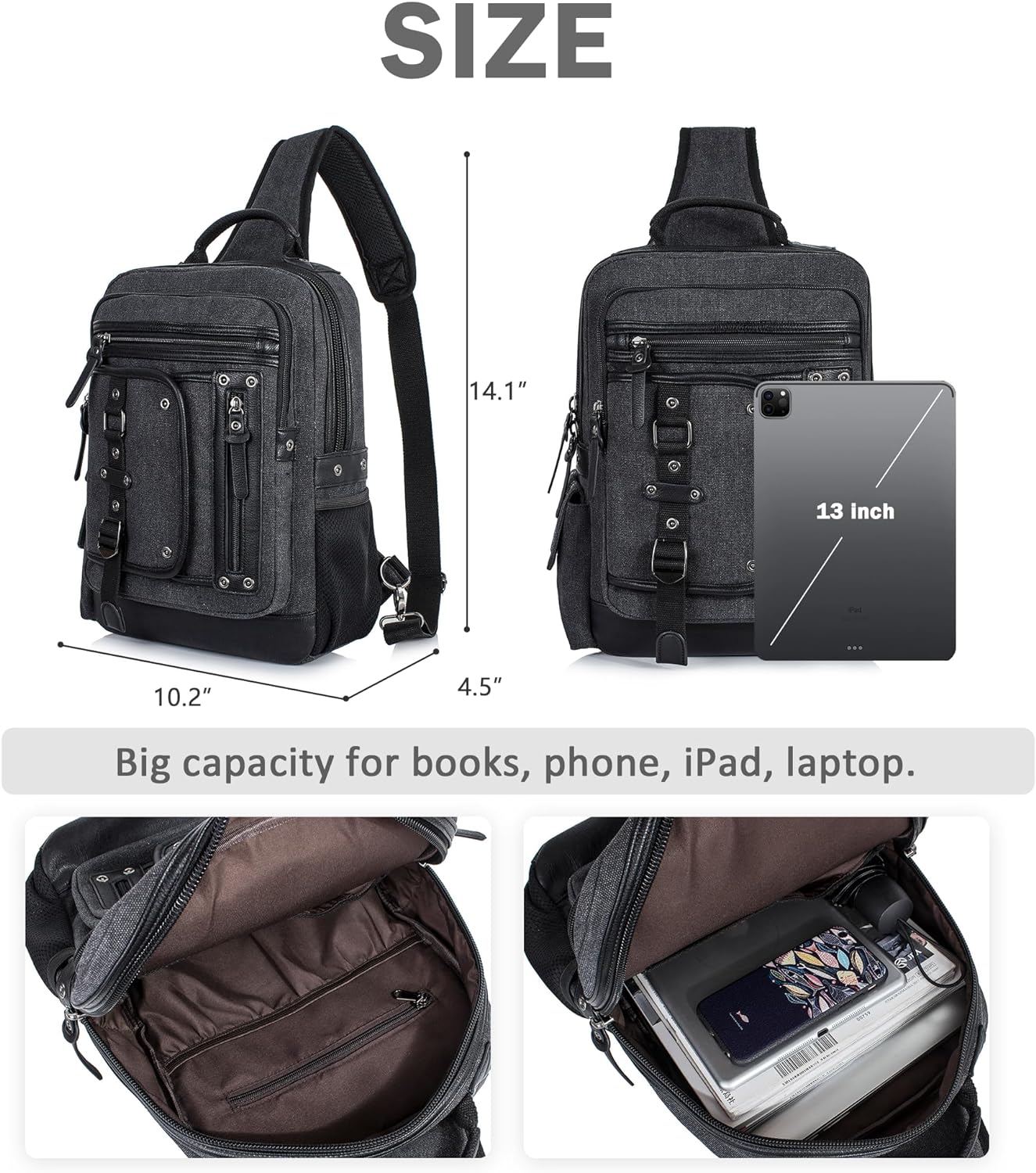Schkleier Messenger Bag for Men Canvas Sling Bag Crossbody Backpack Laptop Shoulder Bag Hiking Daypacks Casual Tactical